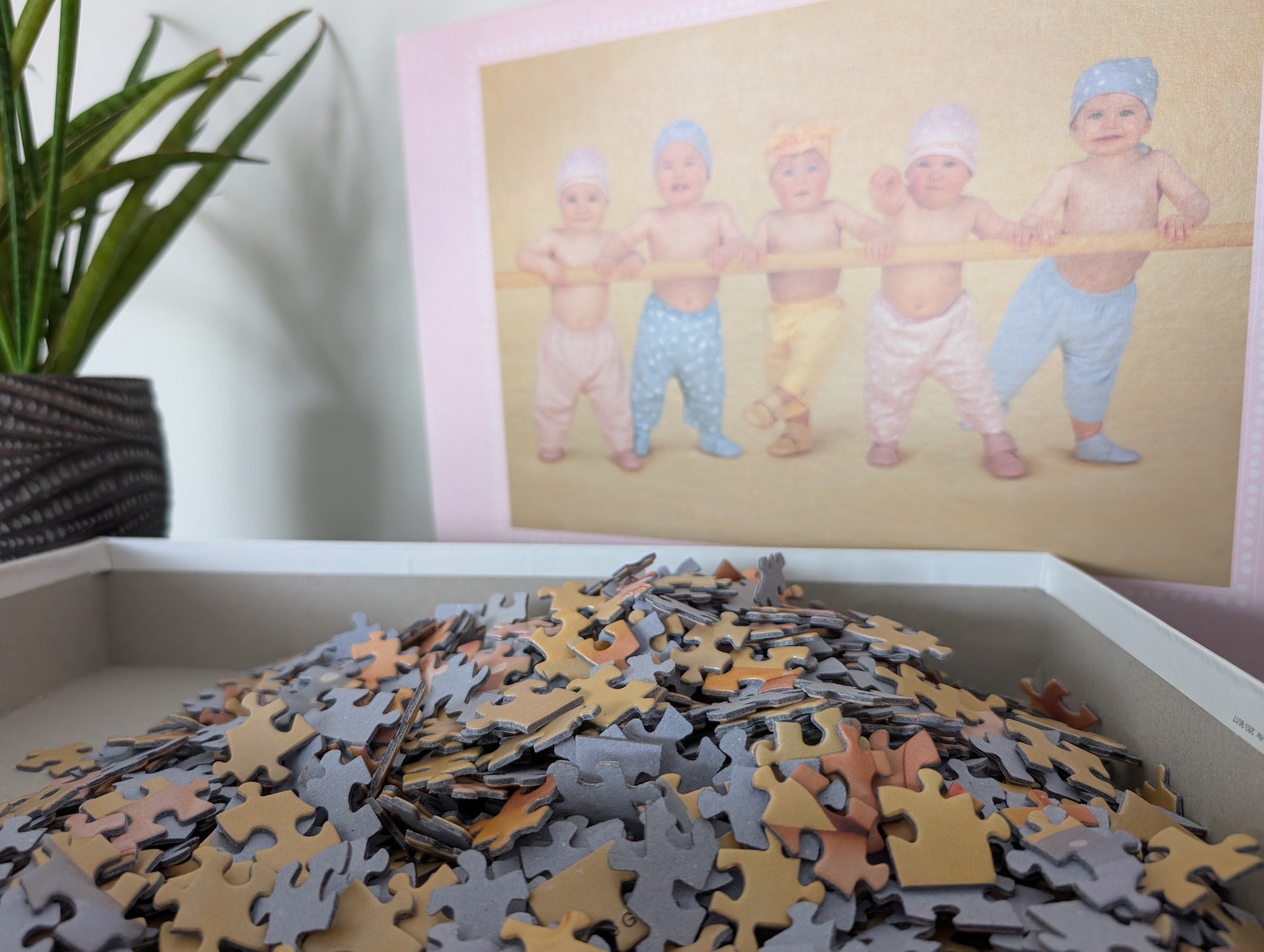 Karp heas korras, servadest värv kulunud, mõned teibivigastused ja liimijäljed. 2008 a pusle pastelsete värvide ja armsa pildiga. Eriti paksud tükid ja matt trükk!